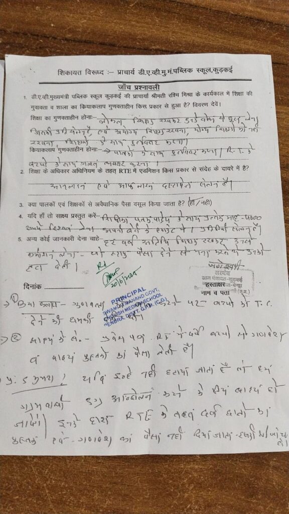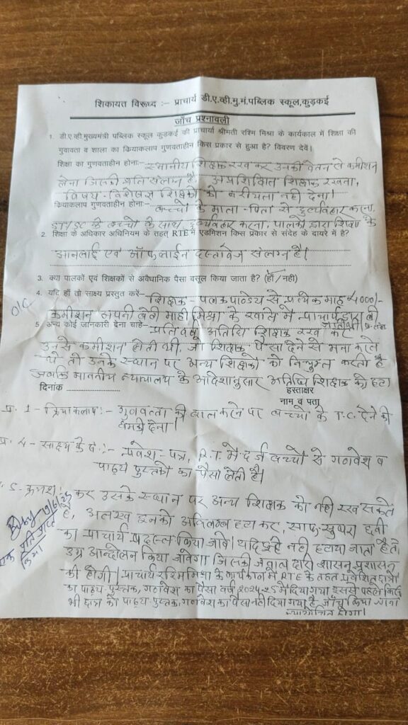 कुड़कई, सेवरा और अडभार पंचायतों के जनप्रतिनिधियों ने मिलकर DAV स्कूल की प्राचार्या के खिलाफ शिकायत की थी। उनका कहना है कि: