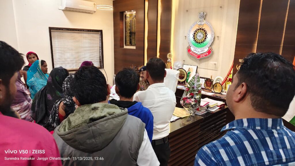 सुरेन्द्र रत्नाकर (प्रदेश अध्यक्ष भीम रेजिमेंट युवा प्रकोष्ठ) लकेश्वर प्रसाद (जिला प्रभारी भीम रेजिमेंट) ओम प्रकाश (जिला उपाध्यक्ष जांजगीर चांपा, भीम रेजिमेंट) जश्वेंद्र खुंटे (जिला अध्यक्ष कार्य. भीम रेजिमेंट), सुरज खरे ब्लॉक अध्यक्ष नवागढ़, सनी सुर्यवंशी ( महामंत्री, भीम रेजिमेंट) विजय महंत संभाग महासचिव (यूवा प्रकोष्ठ) भीम रेजिमेंट सहित वरिष्ठ पदाधिकारियों ने एसपी से मुलाकात कर अभद्र बयानबाजी करने वाले कथावाचक आशुतोष चैतन्य के खिलाफ कड़ी कार्रवाई करने की मांग की.