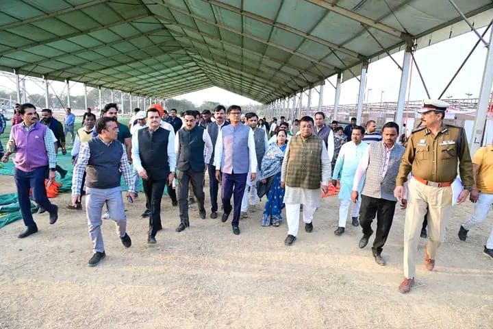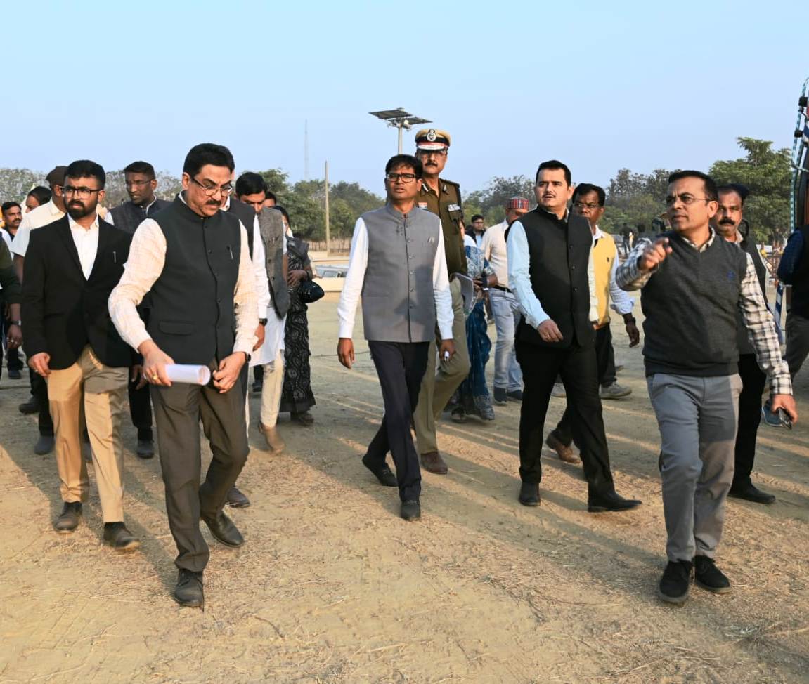 प्रभारी मंत्री श्री चौधरी पुलिस लाइन खोखरा पहुंचे, जहां उन्होंने मंच व्यवस्था, डोम, साउंड सिस्टम, सुरक्षा व्यवस्था, यातायात प्रबंधन, पेयजल, विद्युत आपूर्ति, साफ-सफाई, आवागमन और पार्किंग की व्यवस्थाओं का बारीकी से अवलोकन किया। उन्होंने संबंधित अधिकारियों को निर्देश दिए कि सभी व्यवस्थाएं उच्च स्तर की हों और किसी प्रकार की कमी न रहे। विशेष रूप से दिव्यांगजन, बुजुर्गों एवं महिलाओं के लिए अलग से विशेष सुविधाएं सुनिश्चित करने के निर्देश दिए गए।निरीक्षण के दौरान पूर्व नेता प्रतिपक्ष नारायण चंदेल, पूर्व सांसद कमला देवी पाटले, पूर्व संसदीय सचिव अंबेष जांगड़े, जिला पंचायत उपाध्यक्ष गगन जयपुरिया, नगर पालिका अध्यक्ष रेखा देवा गढ़ेवाल, मुख्यमंत्री के सचिव पी. दयानंद, संभाग आयुक्त सुनील कुमार जैन, पुलिस महानिरीक्षक संजीव शुक्ला, कलेक्टर जन्मेजय महोबे, पुलिस अधीक्षक विजय कुमार पांडेय, वन मंडलाधिकारी हिमांशु डोंगरे, जिला पंचायत सीईओ गोकुल कुमार रावटे, अपर कलेक्टर ज्ञानेन्द्र सिंह ठाकुर, अतिरिक्त पुलिस अधीक्षक उमेश कश्यप सहित अन्य जनप्रतिनिधि और अधिकारी उपस्थित रहे।निरीक्षण के बाद प्रभारी मंत्री ने कलेक्टोरेट सभाकक्ष में वीडियो कॉन्फ्रेंसिंग के माध्यम से बिलासपुर संभाग के सभी कलेक्टरों एवं जिले के अधिकारियों की बैठक ली। बैठक में कार्यक्रम की रूपरेखा, विभागीय दायित्वों और समन्वय व्यवस्था की विस्तृत समीक्षा की गई। श्री चौधरी ने कहा कि यह आयोजन जिले के लिए गौरव का अवसर है। सभी विभाग आपसी समन्वय से अपनी जिम्मेदारियों का निर्वहन करें ताकि कार्यक्रम भव्य और यादगार बने।